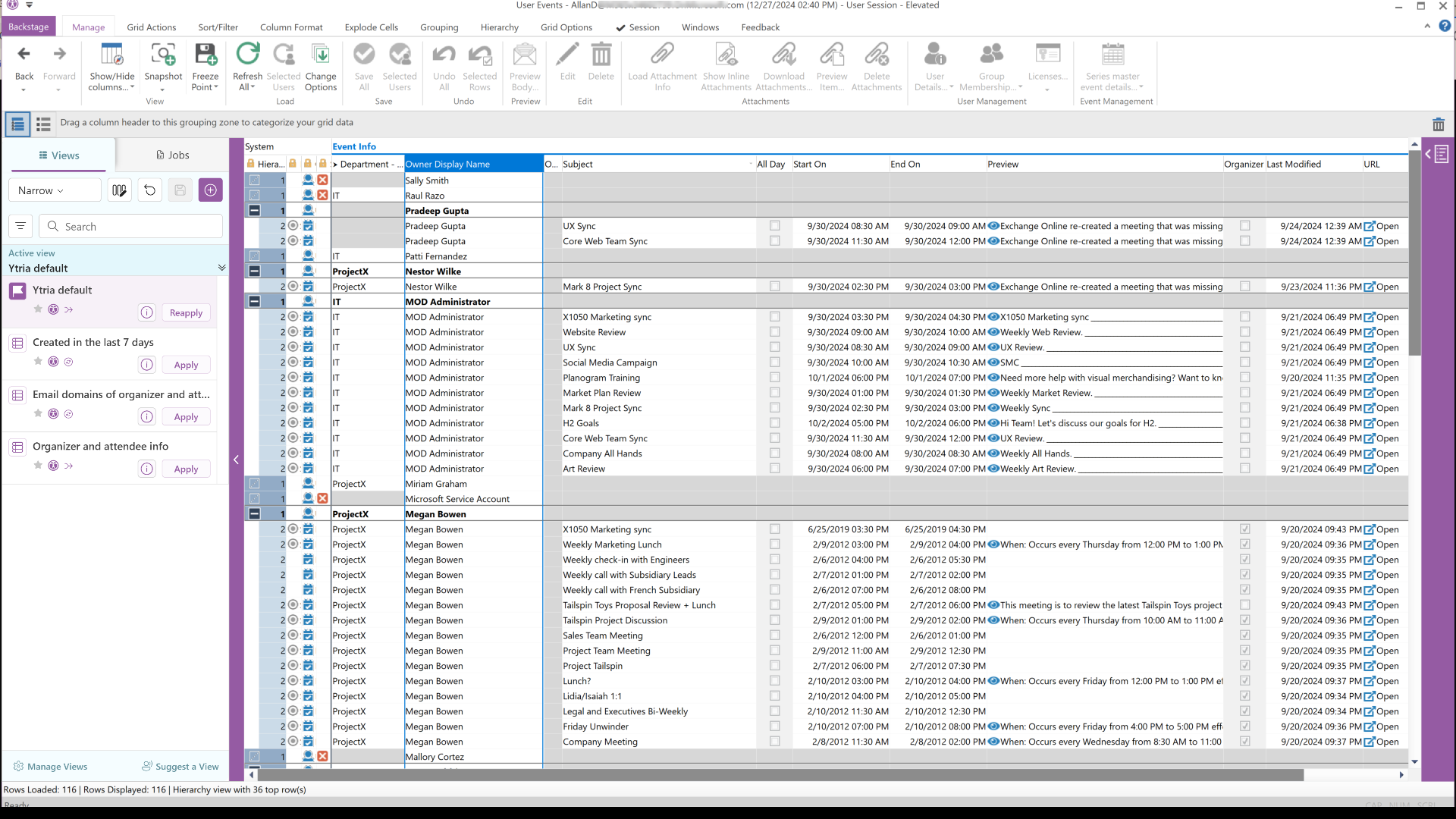 Get a global view of all users' calendar information and dig down into the details to create comprehensive reports.